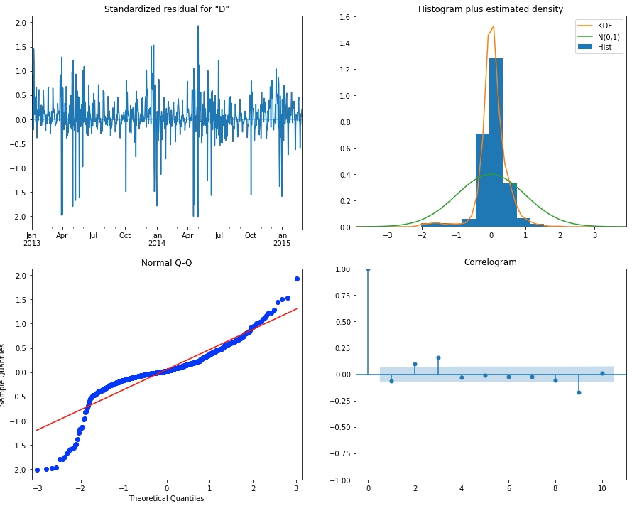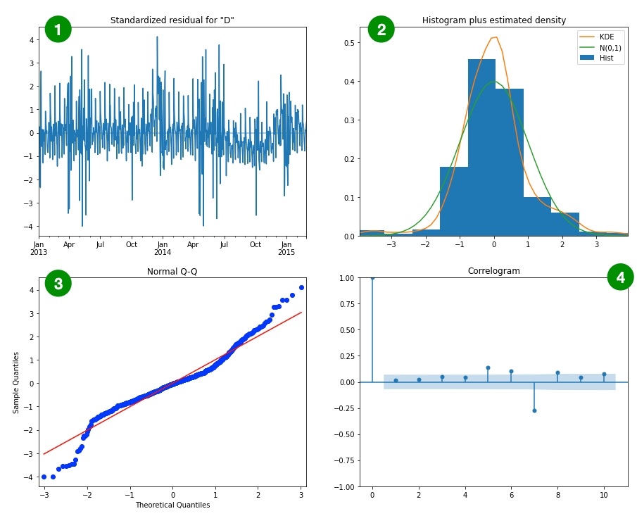 Looking at the code, you must have noticed this diagnostic plot from the fitted ARIMA model! How to interpret this plot? Does it help us make further improvement in model performance? ๐ค Let's follow the Chansey Butterflies to learn more! ๐