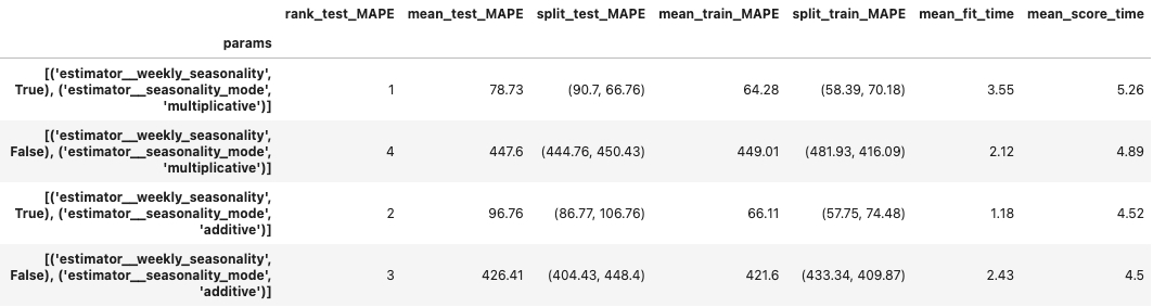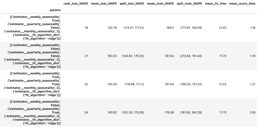 The grid search in Prophet template has less parameters to tune, so we got a shorter output: