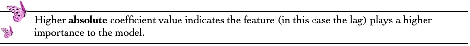 ithand(i+g)th(gis the lag) time series. Autocorrelation is a value between[-1, 1]. A positive autocorrelation suggests that the values tend to move in the same direction, a negative autocorrelation implies they move in opposite directions, and a value close to 0 indicates minimal or no temporal dependency.In an ACF plot, each vertical bar represents the degree of linear dependency between the