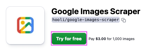 Click Try for free in Apify's Google Image Scraper and sign up for the free account.