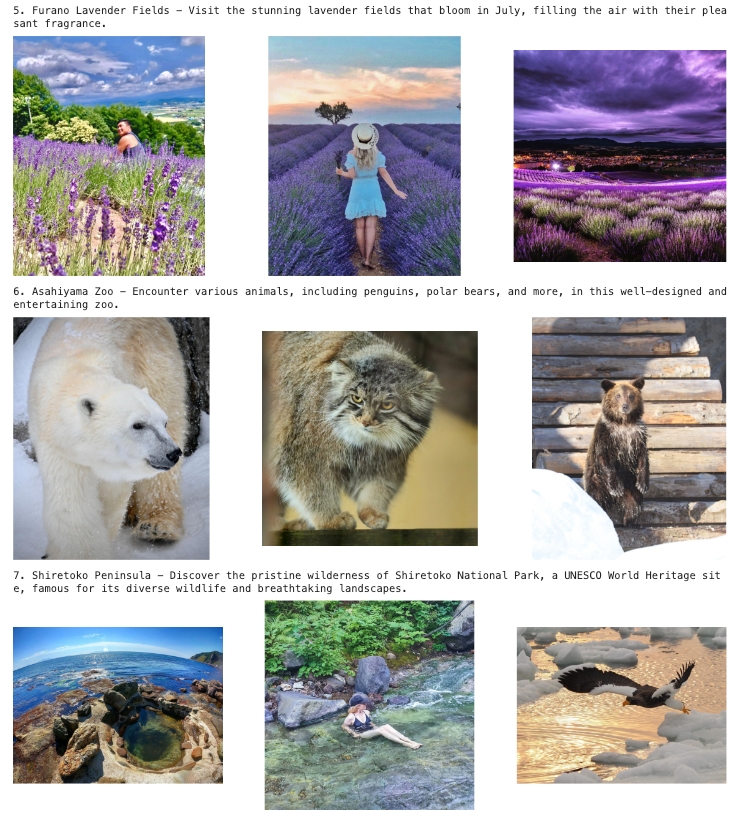 The loaded results page will showcase a map featuring all the suggested spots at the travel destination. This map offers an overview. Subsequently, for each suggestion, 1 or 2 photos depicting local activities will visualize the suggested experience to users!