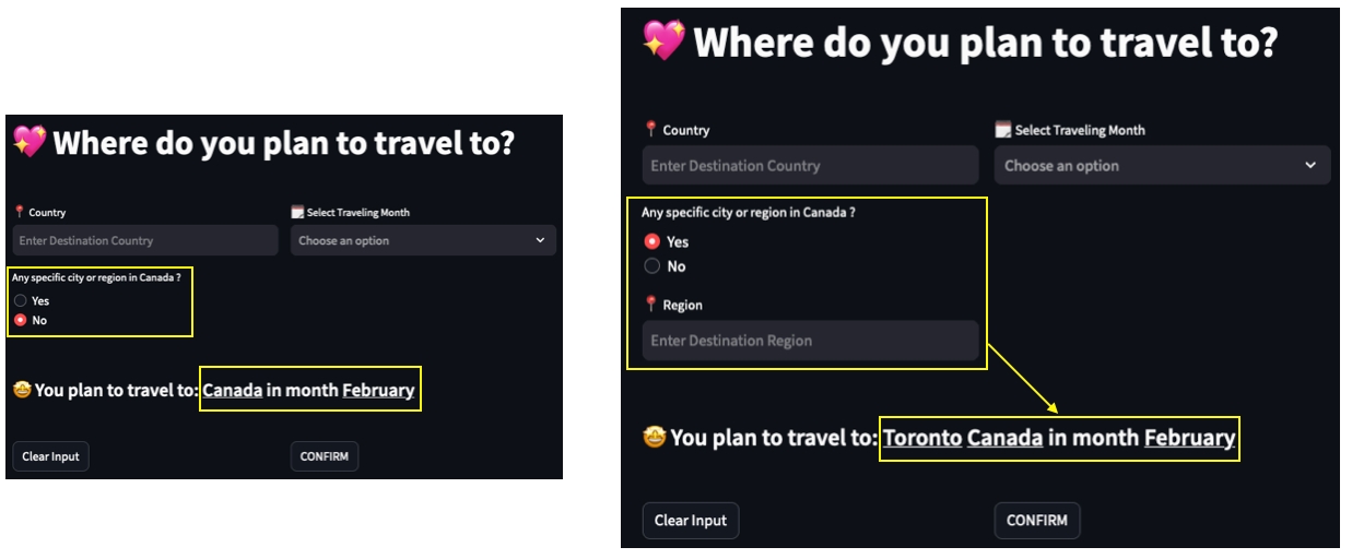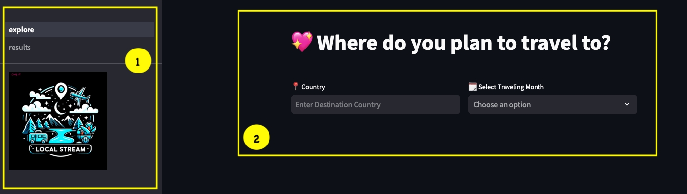The user interface for Local Stream is straightforward. Users need to input their destination country and the month of their intended travel. Additionally, they can further specify the particular region within the country they wish to visit.
